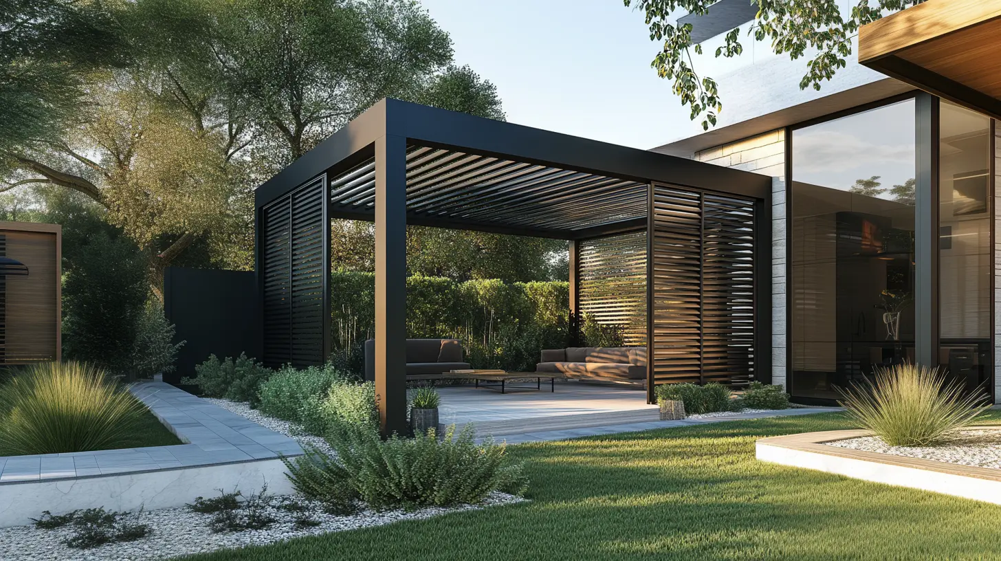 Advanced bioclimatic pergola systems with adjustable louvres for optimal light and temperature control.
